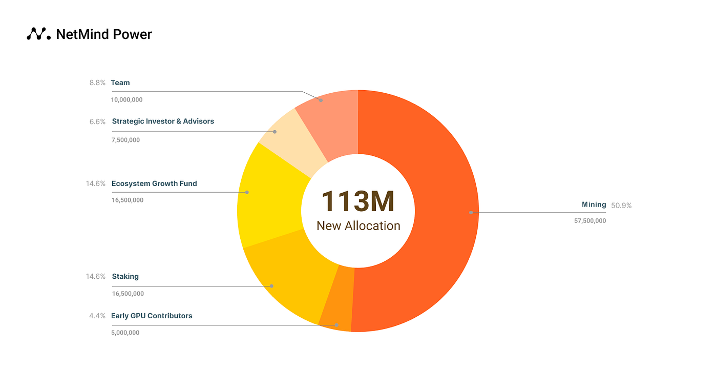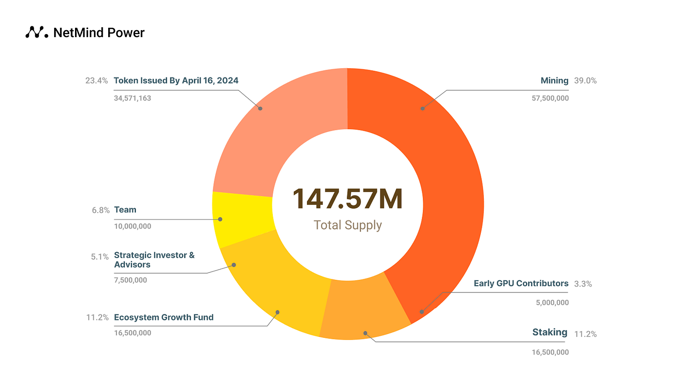 NetMind updated its tokenomics on April 16, 2024, significantly altering the total maximum supply of NMT and revising allocations for mining rewards, staking, team funds, ecosystem growth, and strategic investors. Initially, the tokenomics were designed for a 100-year span due to the founder’s strong belief in the project’s longevity, despite having limited experience in the Web3 space. After evolving into a Web3 company, NetMind aimed to make the tokenomics more sustainable not just for miners, but also for the community, team, and stakers.
