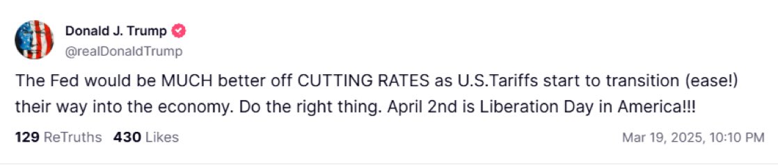 It’s also worth noting that yesterday evening, Trump shared a post on his Truth Social account saying that the Fed would be much better off cutting rates as the US tariffs start to transition their way into the economy. He also said that April 2 will be the Liberation Day in America.