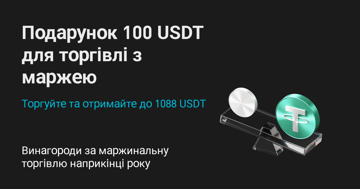 Новим користувачам — 100 USDT для маржинальної торгівлі: торгуйте й заробляйте до 1088 USDT!